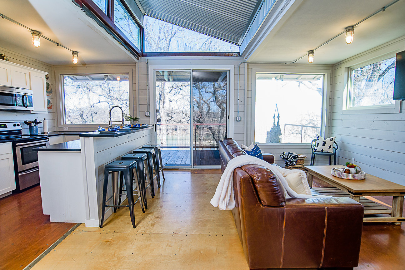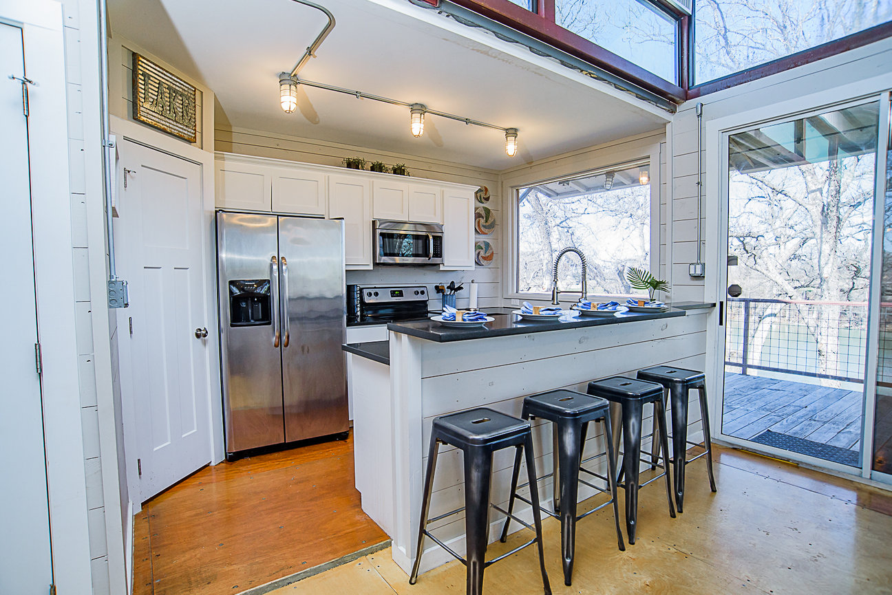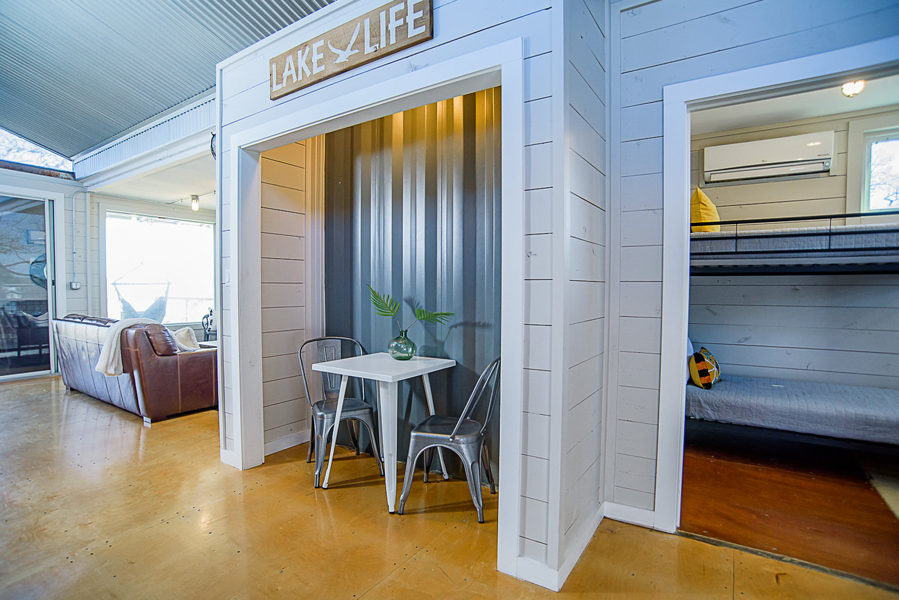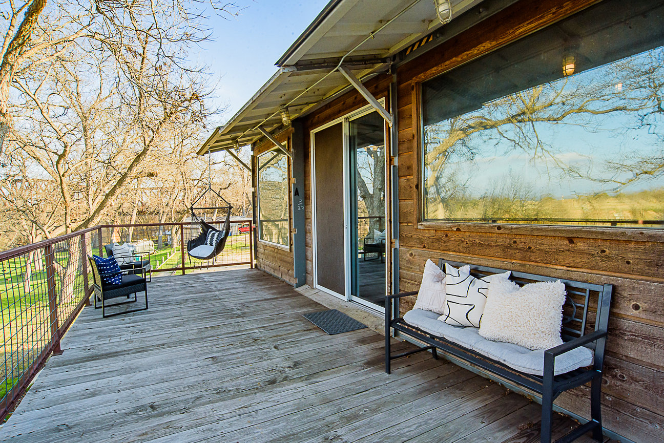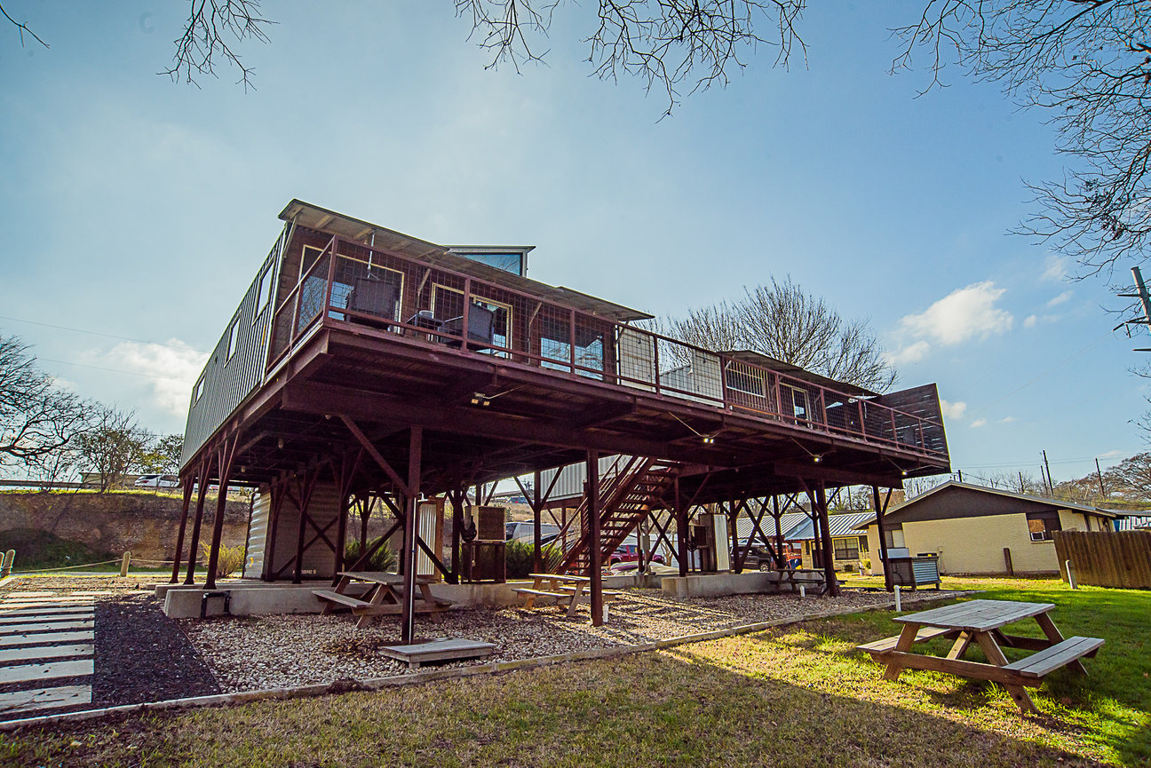 Located on the Guadalupe River-Lake Placid. One of two container homes on a 3 acre property, this spacious waterfront home is located at the Lake McQueeney Dam on the banks of the Guadalupe River. Enjoy kayaking, paddle boarding, sitting by the fire, relaxing in a hammock, an outdoor shower and fishing at this relaxing retreat.