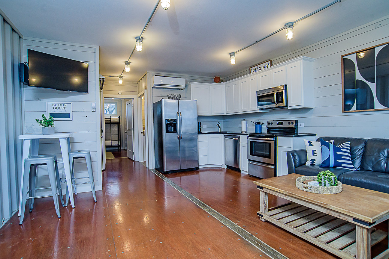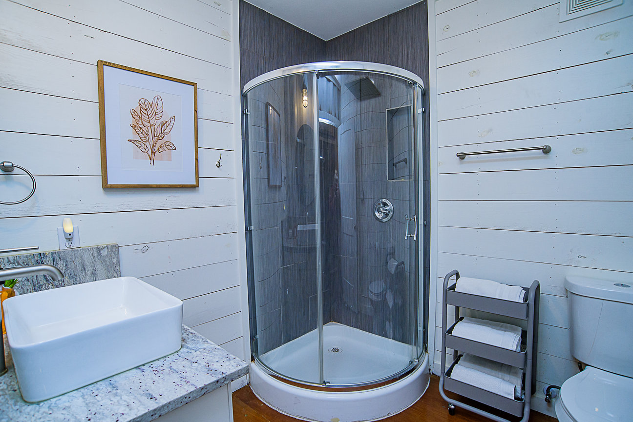 Located on the Guadalupe River-Lake Placid. One of two container homes on a 3 acre property, this spacious waterfront home is located at the Lake McQueeney Dam on the banks of the Guadalupe River. Enjoy kayaking, paddle boarding, sitting by the fire, relaxing in a hammock, an outdoor shower and fishing at this relaxing retreat.